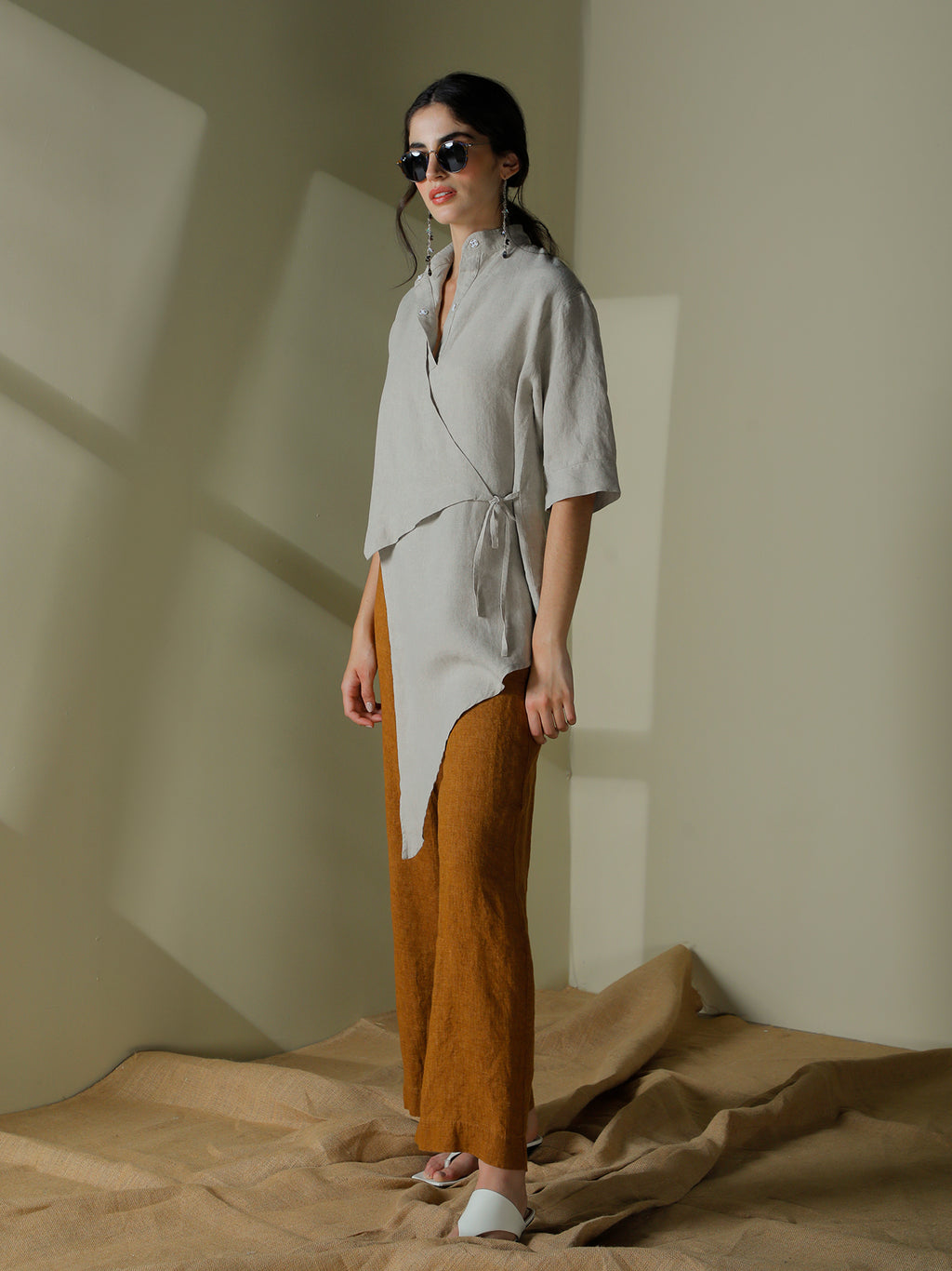 Blusa asimétrica cruzada en lino